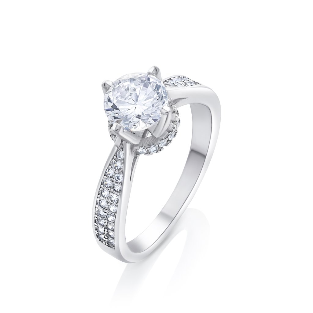 Nádherný ručne vyrobený zásnubný prsteň, s precízne ručne vsadenými kameňmi. Neobyčajný dizajn dodáva jedinečný zjav, ktorý je typický pre umeleckého klenotníka. Elegancia a pohodlnosť zároveň. Na mieru vám ho vyrobíme v bielom, v žltom, v ružovom zlate alebo v platine. Môžete si vybrať zirkónovú alebo briliantovú verziu.